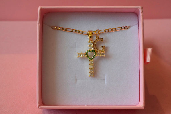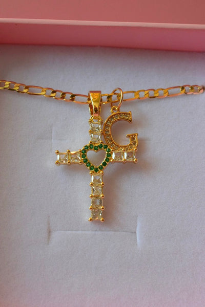 Emerald Heart Cross & Initial