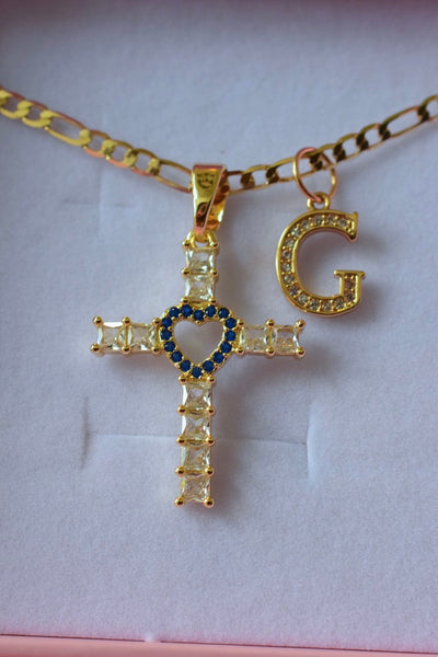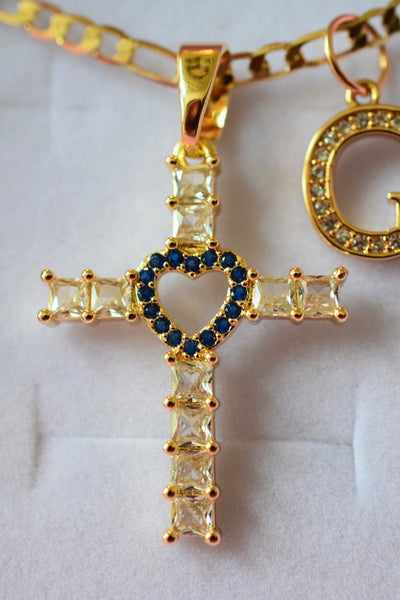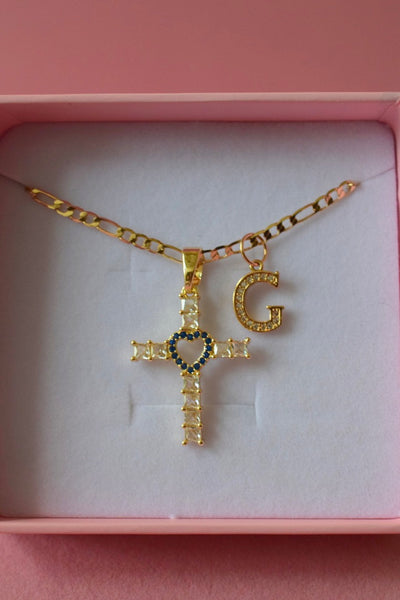 Sapphire Heart Cross & Initial