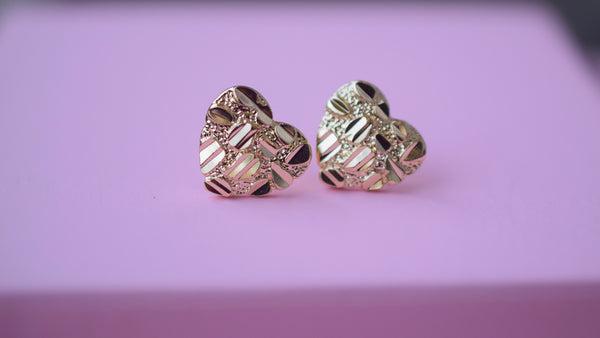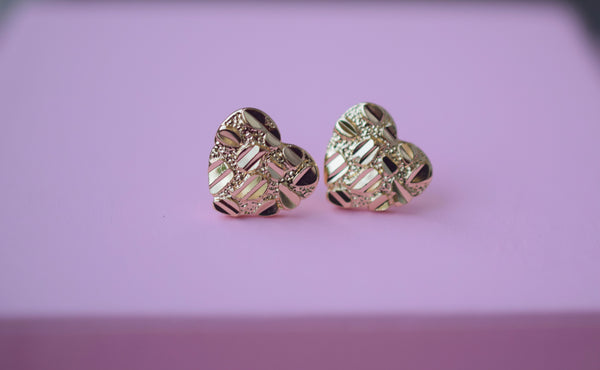 18k gold plated heart studs with a nugget design. The backings are push back.