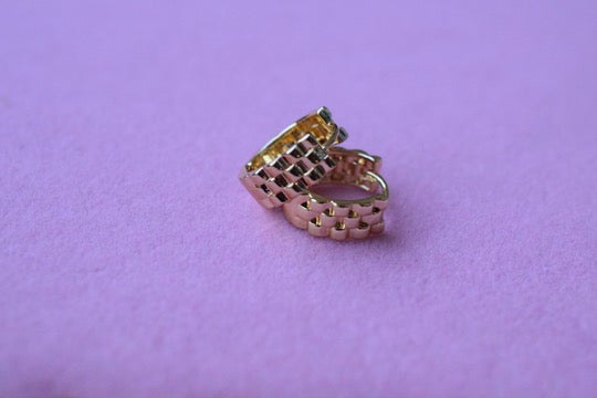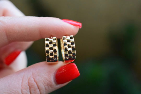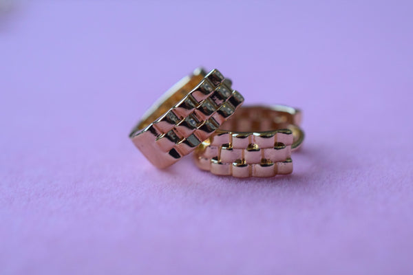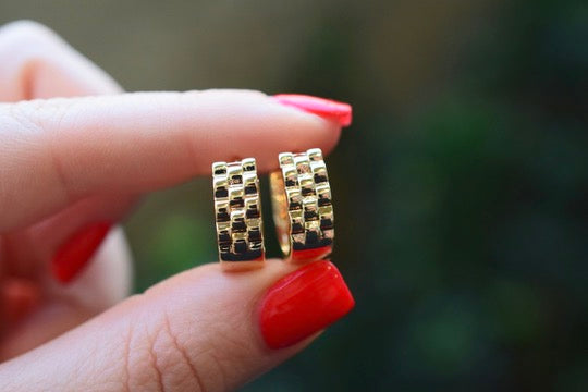 These are small but thick 18k gold plated huggie hoops. It has a link design.