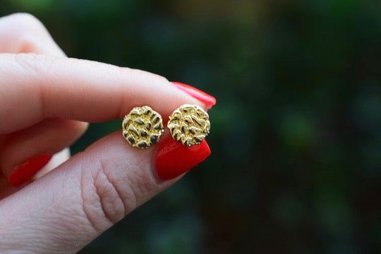 18k gold plated nugget style small round stud earrings. The packings are push back.