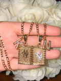 This is our yellow or tricolor gold plated framed rose necklace featuring our icy initial charm made of top of the line diamond inspired cubic zirconia stones. The chain is a classic gold plated figaro chain. Please select rose color in drop down menu.