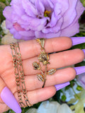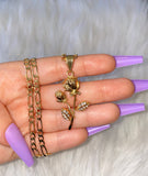 Beautiful 3D gold plated rose pendant with diamond inspired shiny stones. The chain is a classic gold figaro chain.