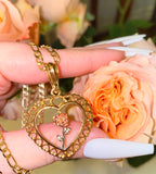 Gold plated heart necklace with a rose necklace in the middle.
