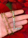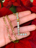 Extra large and extra shiny gold plated letter L pendant sitting on a classic gold plated figaro chain. The pendant is 2 inches long and almost 1 inch wide. This is a unisex pendant. Please select length of chain in dropdown menu.