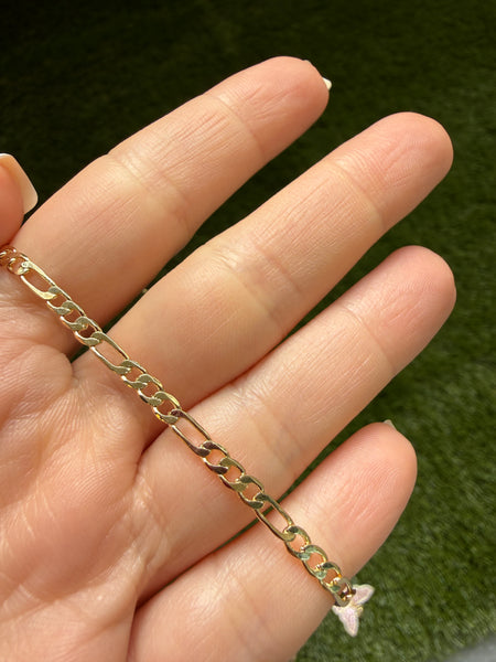 The chain is a figaro chain. Please state your chain length preference in the note box in your cart. If left blank we will choose for you. The choices are 18, 20, 22, 24 and 26 inches.