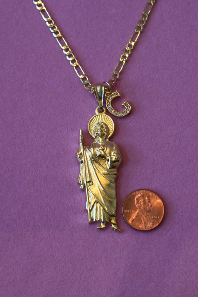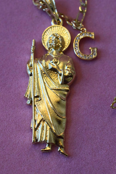 Pendant Size: The Saint Jude is large and the letter is small. Please see 4th photo for size.