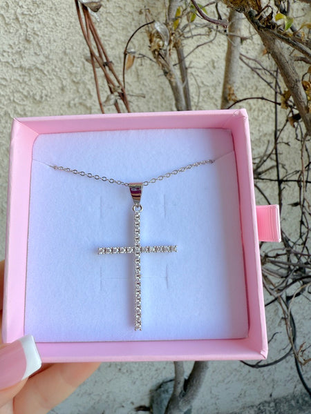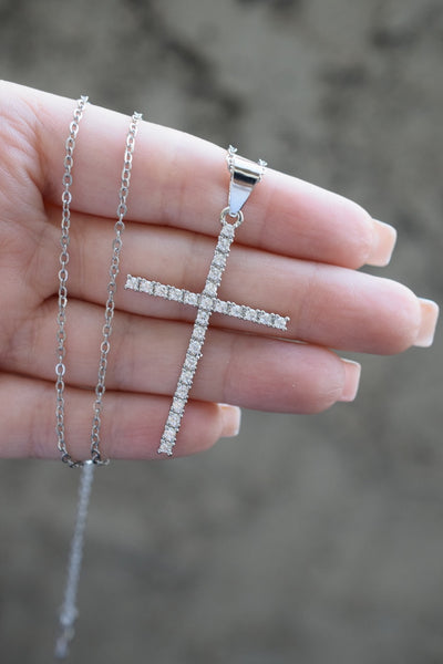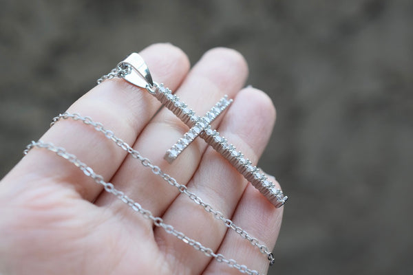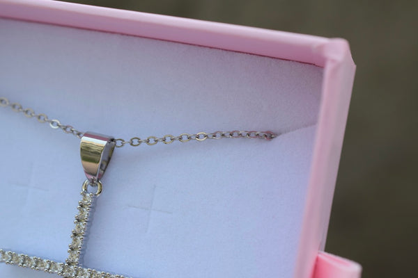 Metal: The cross is 18k white gold plated and the chain in silver tone alloy.