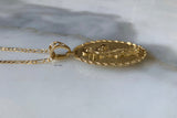 Very large reversible oval 18k gold plated medallion. One side is the Virgin Mary and the other side is Saint Jude. The detailing around this large medal is a rope design.