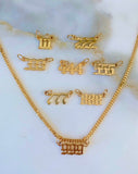 This is a custom made gold plated angel number necklace. The chain is a our gold plated"Kyra Cuban Chain". Please select the number you would like in the dropdown menu.