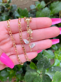Tricolor gold plated rose stem necklace dangling off a classic gold plated figaro chain. This amazingly detailed 3D rose has a shiny finish.