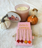 Metal: The chain and letter charm are gold plated. The pumpkin is alloy.