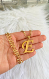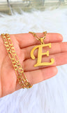 Gold plated upper case initial pendant on a classic gold plated figaro chain.