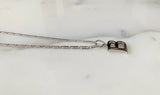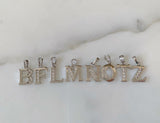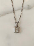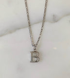 Beautiful small to medium sized white gold plated initial pendants with channel set shiny round white cz stones, inspired by diamonds. The initial sits on a thin white gold plated figaro chain. These chains and pendants are high quality and beautiful. They have the look of fine jewelry. Please select your letter in the dropdown menu.