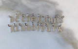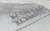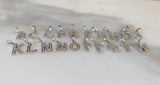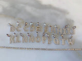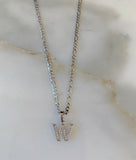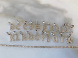 Gorgeous white gold plated small initial pendant with dazzling round, white, and shiny micropave set diamond inspired cz stones. The pendants sit on classic white gold plated figaro chains, that are on the thinner side, which go great with the small pendant. These pendants and chains are of high quality and have very realistic "fine jewelry look".