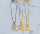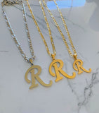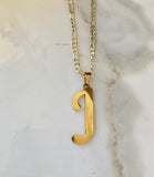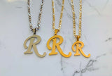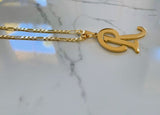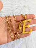 Gold plated upper case initial pendant on a classic gold plated figaro chain.