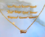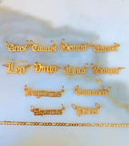 This custom made necklace consists of any zodiac sign in old english. You can see your sign in the 2nd photo. The chain is a gold plated figaro chain.